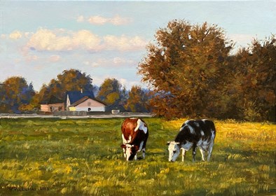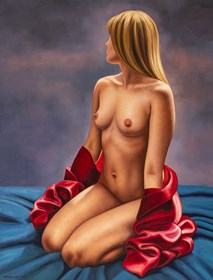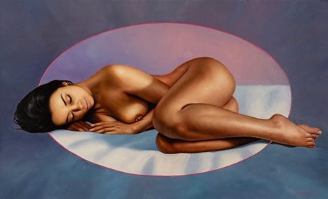 He is a painter who creates large commissioned sacred scenes and portraits. He also paints realistic landscapes, elegant still lifes, and nudes set in minimalist, studio-like settings reminiscent of photographic studios. Moreover, his works from the latter two categories, with their photographic precision, verge on hyperrealism.