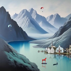 Obraz o tytule "Z cyklu Dzień bez grawitacji" to praca z 0 roku o wymiarach 200x140 cm. Jej autorem jest Waldemar Marszałek.